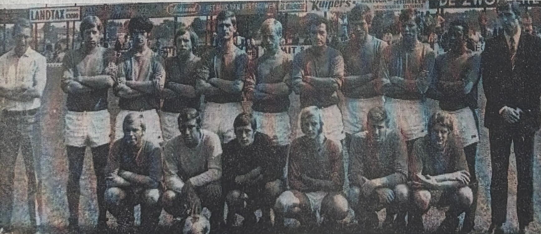Boven vlnr: Jan Verheart (assistent-trainer), Henk Schuman (verzorger), Jan Hendriksen, Jan Verheijen, Jan Lieftink, Willem Mensink, René IJzerman, Ben Spanhaak, Lody Kragt, Klaas Drost, Fons Stoffels, Jan Rorije en Georg Keßler (trainer).